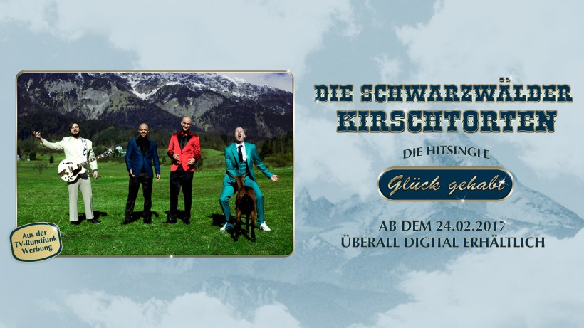 Die Schwarzwälder Kirschtorten sind eine der erfolgreichsten Deutschen Schlager Bands. Über 200.000 verkaufte Tickets ihrer „Kirschtorten Live Tour 2016″sprechen da für sich. Mit ihrer neuen Single „Glück Gehabt“ werden sie diese Erfolgsserie jetzt fortsetzen, bietet diese Nummer doch Potenzial zum Feten-Hit des Jahres. „Glück Gehabt“ ist geprägt von Leichtigkeit und Augenzwinkern und hat dennoch eine gewisse Substanz, eine der typischen Macharten der Kirschtorten, die ansonsten nicht viele Schlager Stars beherrschen. Selbst Helene Fischer hat sich schon als grosser Fan geoutet. 2017 wird das Jahr der Schwarzwälder Kirschtorten. Glück gehabt!
